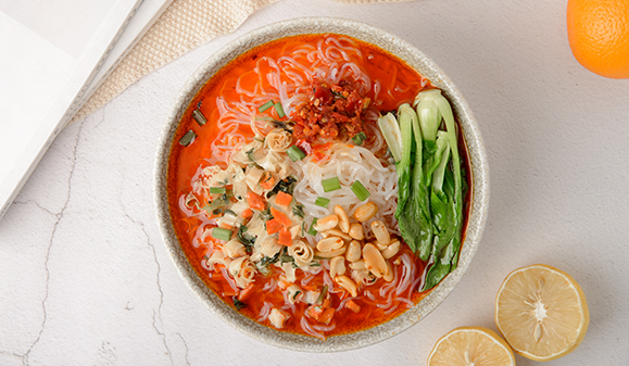 美味大膽嗦,解饞無腹擔。魔芋粉絲晶瑩透亮,含有葡甘聚糖,具有強大的膨脹力,產生飽腹感。