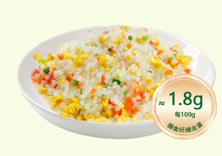 每100g膳食纤维含量在1.8g仿真米粒形态,饱腹感强,碳水替代优选,煮粥、炒饭无负担,控卡人士福音